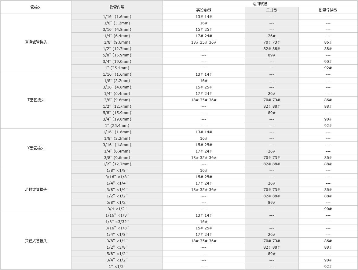 蘭格公司提供以下四種材料的蠕動泵管接頭,可以完美的與軟管系統相連并保證液體流動的通暢。
