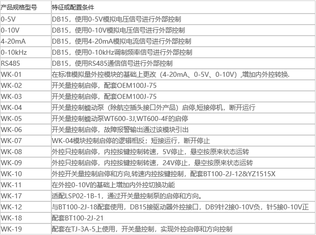 模擬電壓信號(hào)進(jìn)行外部控制,開(kāi)關(guān)量控制,實(shí)現(xiàn)外控啟停和方向等控制 流量范圍:- 最大通道數(shù):請(qǐng)選擇通道數(shù)