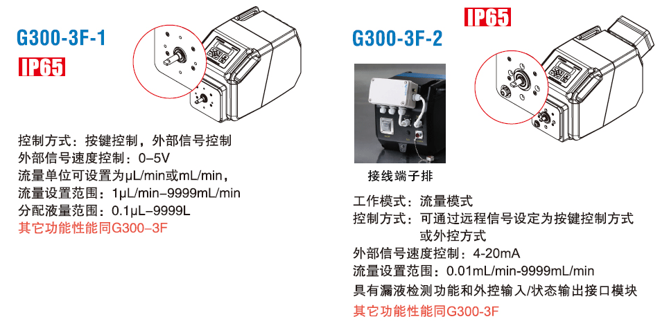 | 狀態輸出功能 | 提供狀態輸出接口,可輸出泵的啟停狀態(OC門信號)、方向狀態(OC門信號)及轉動速度(125-7500Hz線性對應0.1-300rpm) |