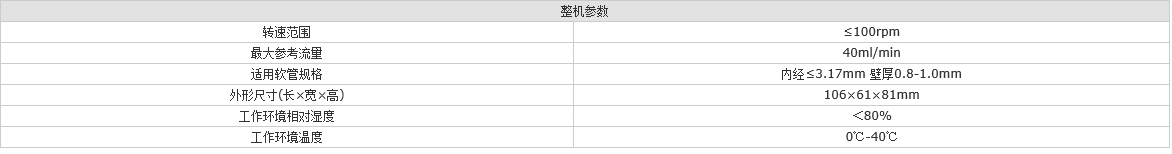 由WX10-14泵頭搭配42步進電機構成的體積小、結構簡單的蠕動泵產品。主要在設備、儀器中配套使用,實現24mL/min以下的流體傳輸。