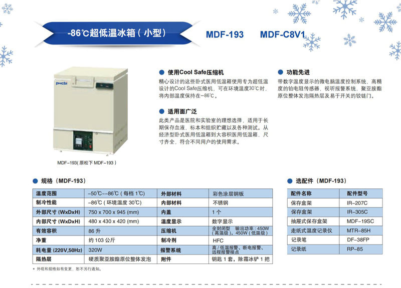 使用Cool Safe壓縮機(jī) 功能先進(jìn) 精心設(shè)計的這些臥式醫(yī)用低溫箱使用專為超低溫 帶數(shù)字溫度顯示的微電腦溫度控制系統(tǒng),高精 設(shè)計的CoolSafe壓縮機(jī)可在環(huán)境溫度30℃時 度的鉑電阻傳感器視聽報警系統(tǒng)聚亞胺酯 將內(nèi)部溫度保持在-86℃。 原位整體發(fā)泡隔熱層及易于開關(guān)的鉸鏈門。 適用面廣泛此類產(chǎn)品是醫(yī)院和實驗室的理想選擇,適用于長期保存血液標(biāo)本和組織貯藏以及各種測試。從經(jīng)濟(jì)型臥式醫(yī)用低溫箱到大容積醫(yī)用低溫箱.尺寸齊全,符合不同用戶的使用需求。