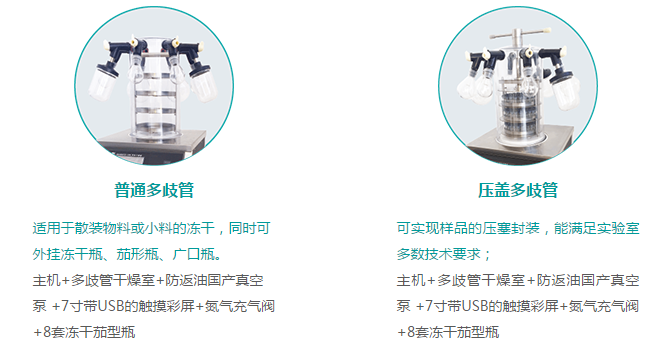 • 廣口歧管凍干瓶配置,易于裝取物料,可與進口標準的凍干瓶、閥配套連接,標配8只管