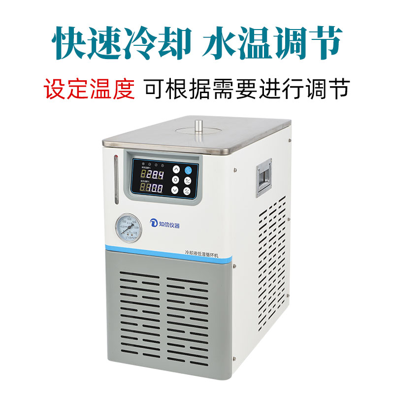 冷卻液循環機又稱低溫浴槽,可在機內開口槽中進行低溫試驗,也可將低溫液體外循環。是用壓縮機制冷方法的液體循環設備,可直接冷卻試管、反應瓶等進行低溫下的化學反應,進行化學品和生物制品低溫儲存,也可結合旋轉蒸發儀、循環水真空泵、鍍膜機、激光器等各種水冷卻儀器進行水冷卻處理。