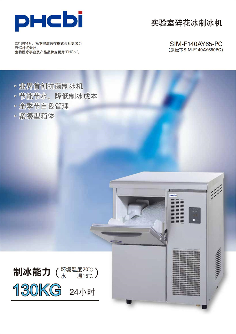 2018年4月,松下健康醫(yī)療株式會社更名為 SIM-F140AY65-PC PHC株式會社, 生物醫(yī)療事業(yè)及產品品牌變更為“PHCbi"。 (原松下SIM-F140AY650PC) 。業(yè)界首創(chuàng)抗菌制冰機·節(jié)能節(jié)水,降低制冰成本·全季節(jié)自我管理·緊湊型箱體