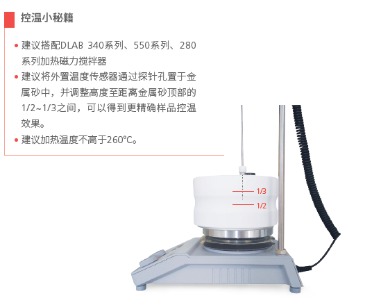? 模塊配有外置探針孔,搭配DLAB加熱磁力攪拌器可實(shí)現(xiàn)外部精確控溫;
