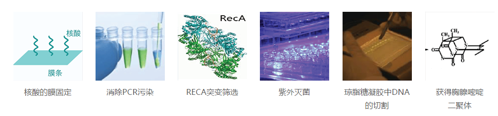 SCIENTZ03-II紫外交聯儀是一種多用途的245nm紫外輻射系統,主要用于將核酸交聯固定于膜上。使用本儀器可在30-60秒之內將核酸固定于雜交膜上,且雜交信號比傳統烘烤法提高5-10倍。另外,該儀器還可用于瓊脂糖凝膠中DNA的切割、RecA突變篩選、嘧啶二聚體產生的部分限制性內切酶消化、UV滅菌消除PCR污染等。