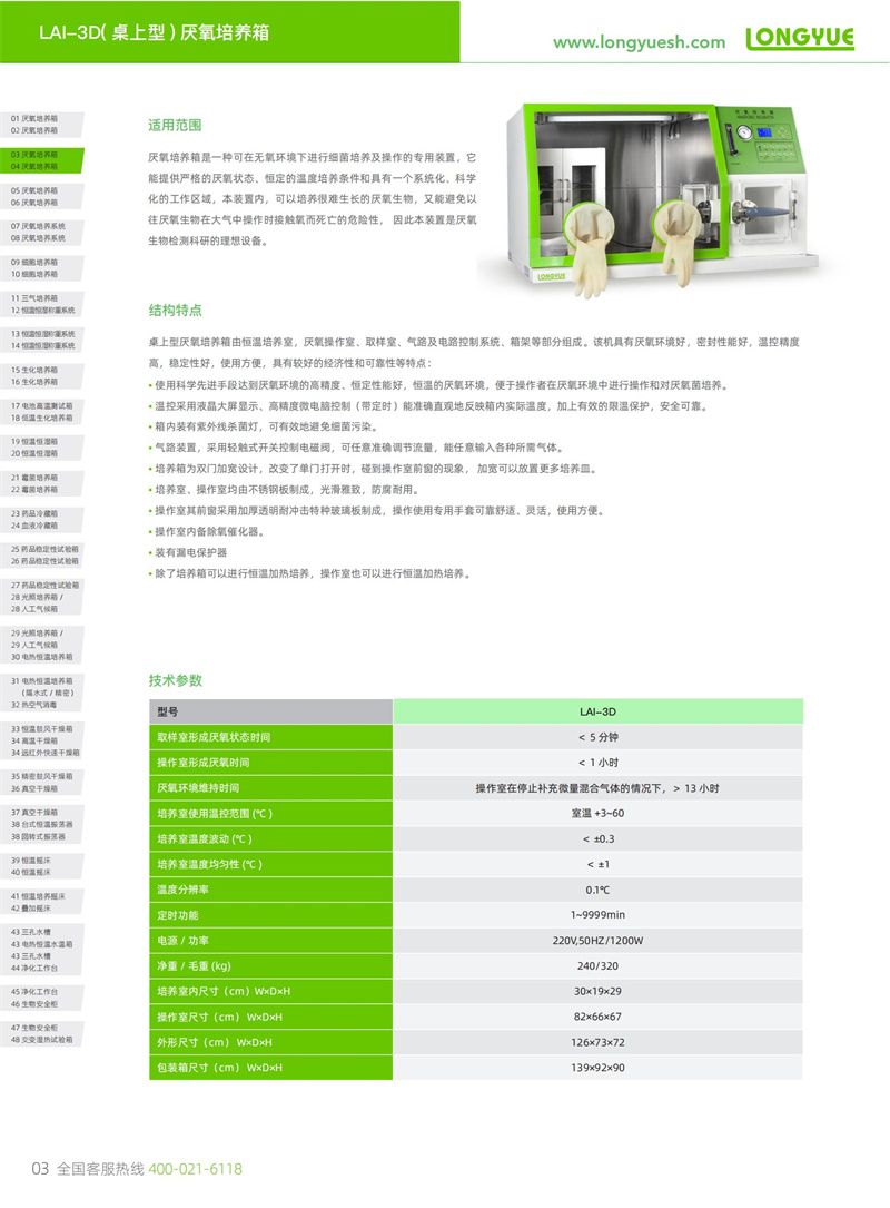 上海龍躍LAI-3D(桌上型)厭氧培養箱由恒溫培養室,厭氧操作室、取樣室、氣路及電路控制系統、箱架等部分組成。該機具有厭氧環境好,密封性能好,溫控精度高,穩定性好,使用方便,具有較好的經濟性和可靠性等特點。