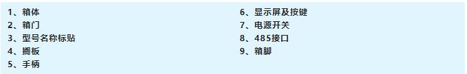 2、箱門中間設有鋼化玻璃觀察窗,便于觀察箱內物品,箱門與箱體之間用耐高溫硅橡膠密封條密封,保溫性好。
